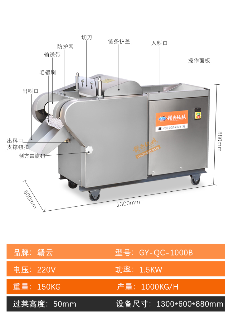 果蔬加工機(jī)械->多功能切菜機(jī)->1000B型多功能切菜機(jī) | |||||||